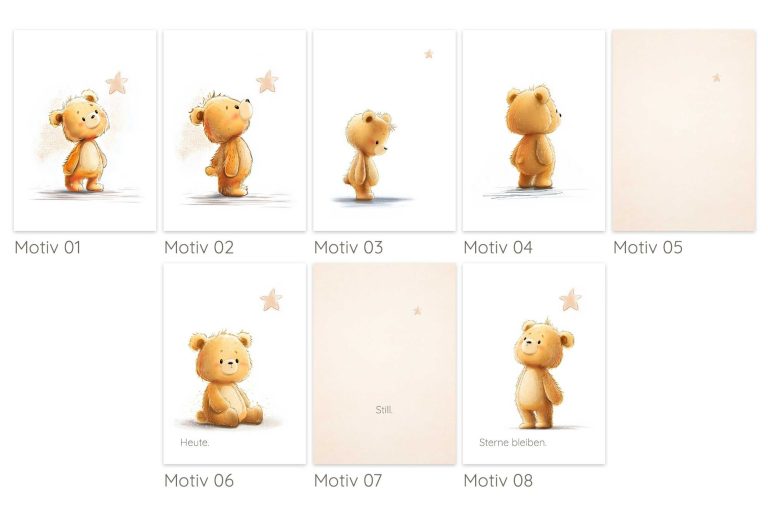 Unsere Erinnerungssets Plus enthalten eine erweiterte Auswahl an Motiven. Sie sind für Menschen gedacht, die ihre Erinnerung über einen längeren Zeitraum begleiten möchten. Die Nutzung ist offen und ohne feste Reihenfolge möglich.